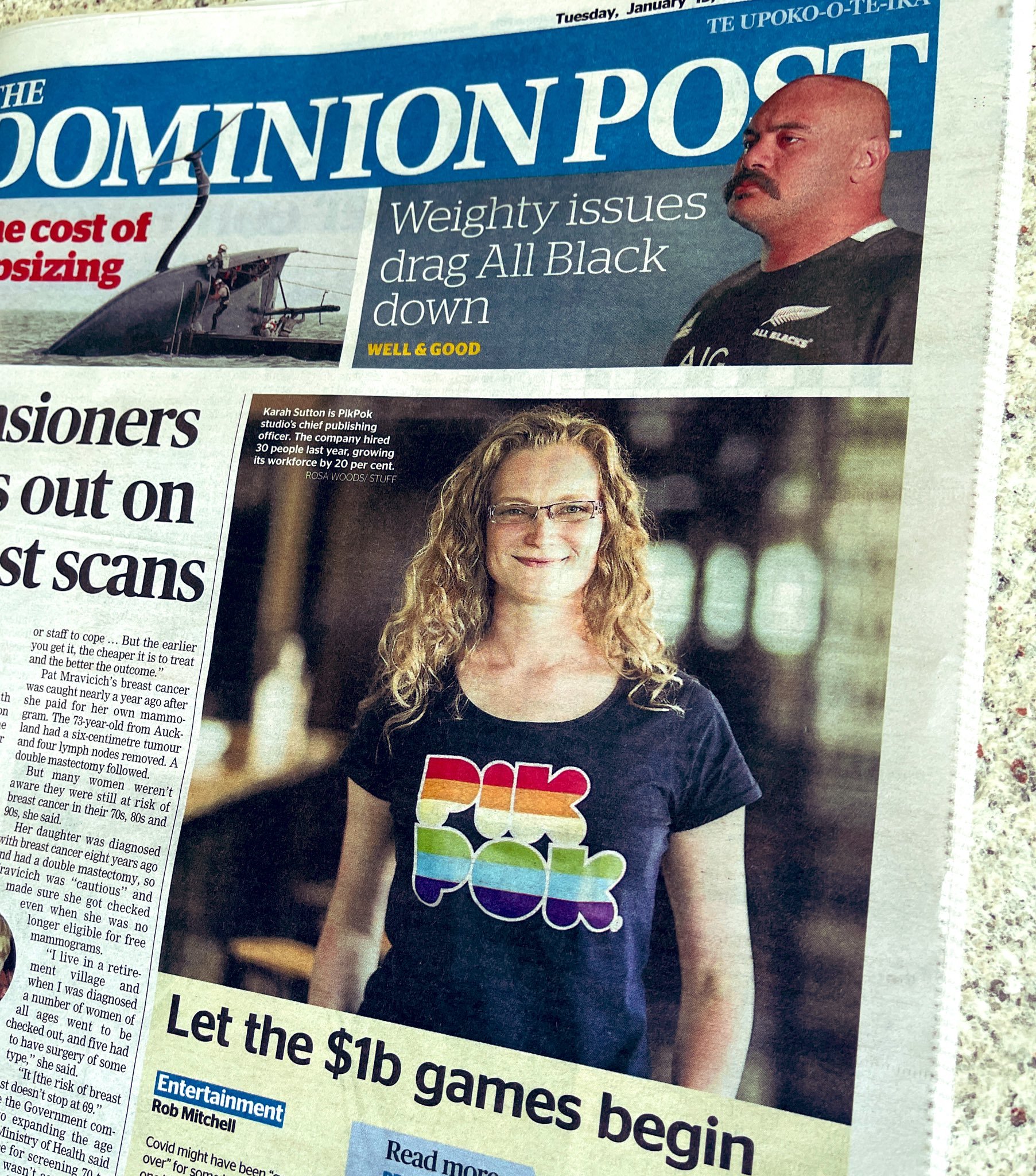 This week in the news: A front-page article in the Dominion Post about the growth of game development in New Zealand.Featuring interviews with some of our industry's champions - including Karah Sutton of PikPok, Lucy Morris of Starcolt, James Everett of NZXR Ltd., Simon McCallum of Victoria University, and NZGDA Chairperson, Chelsea Rapp.Read the full article here.